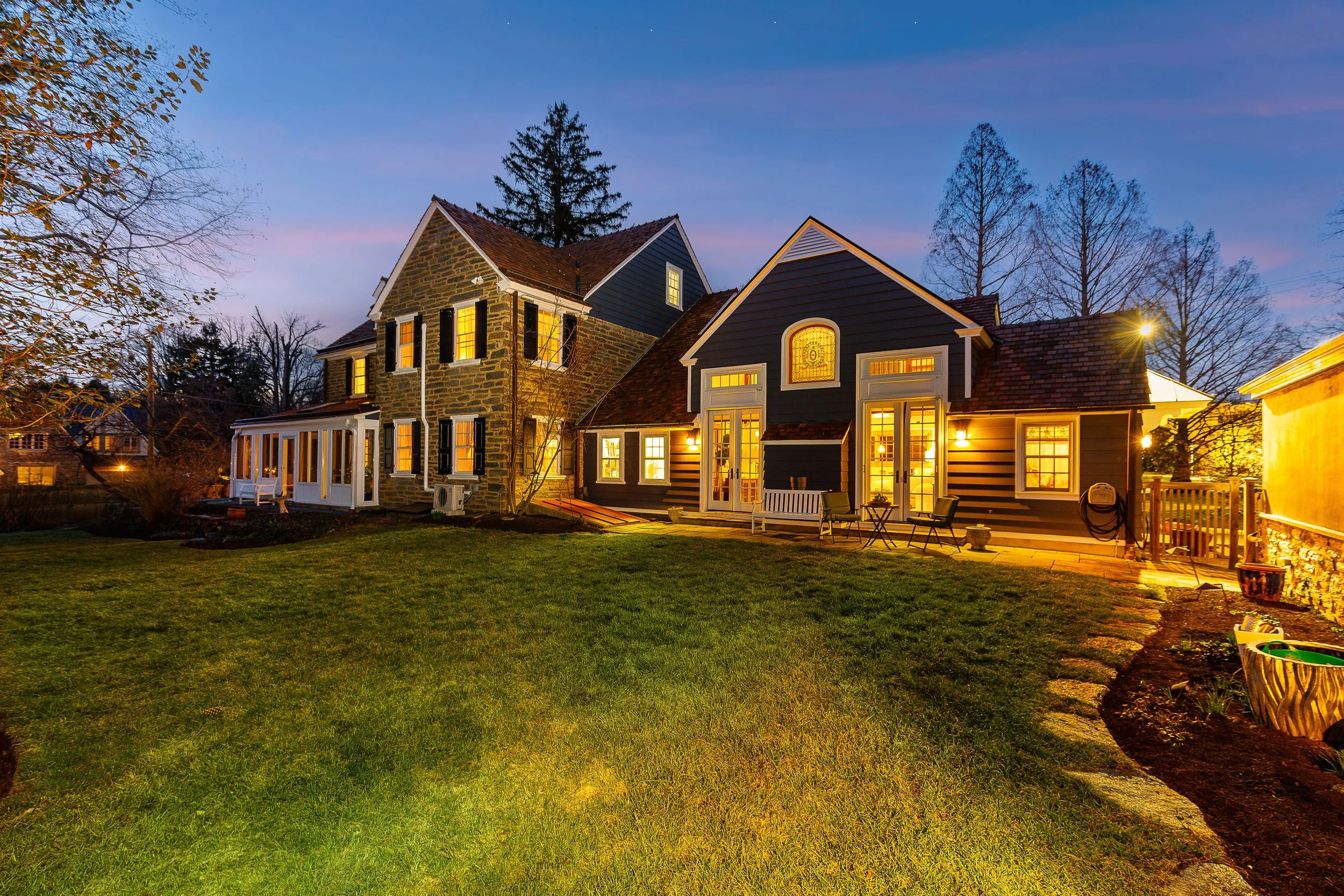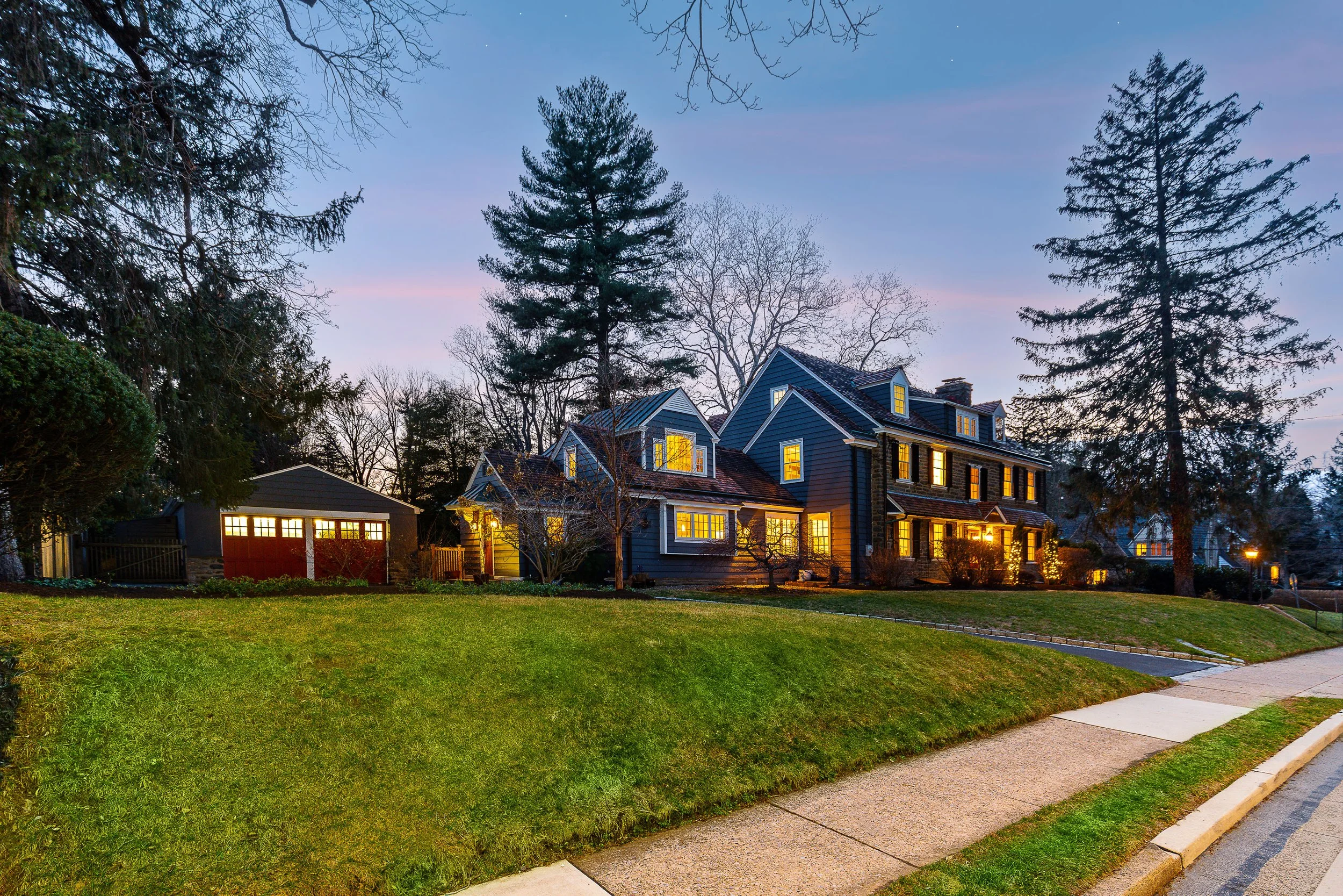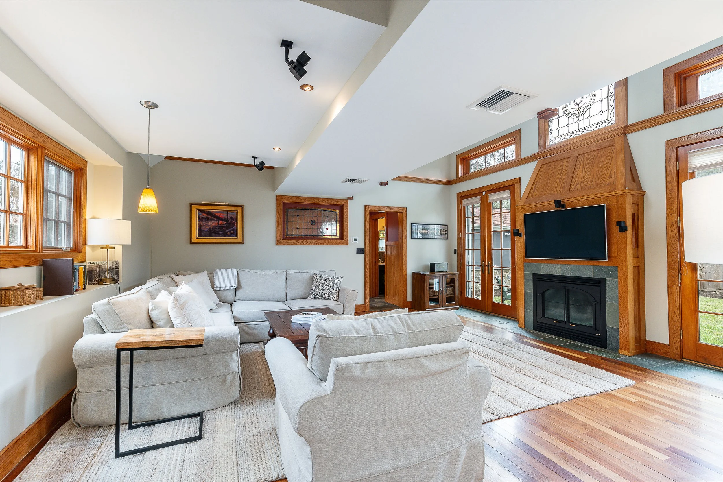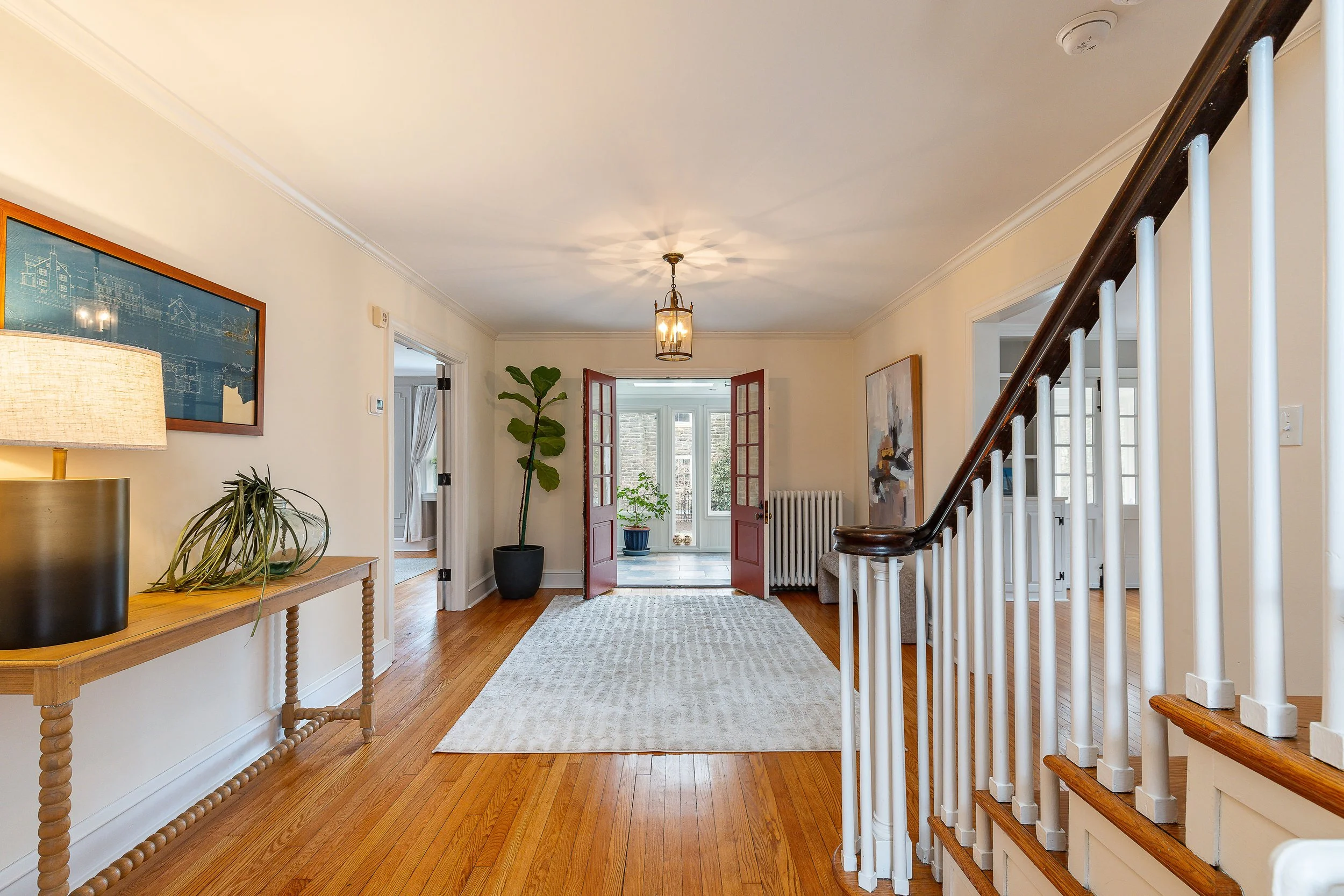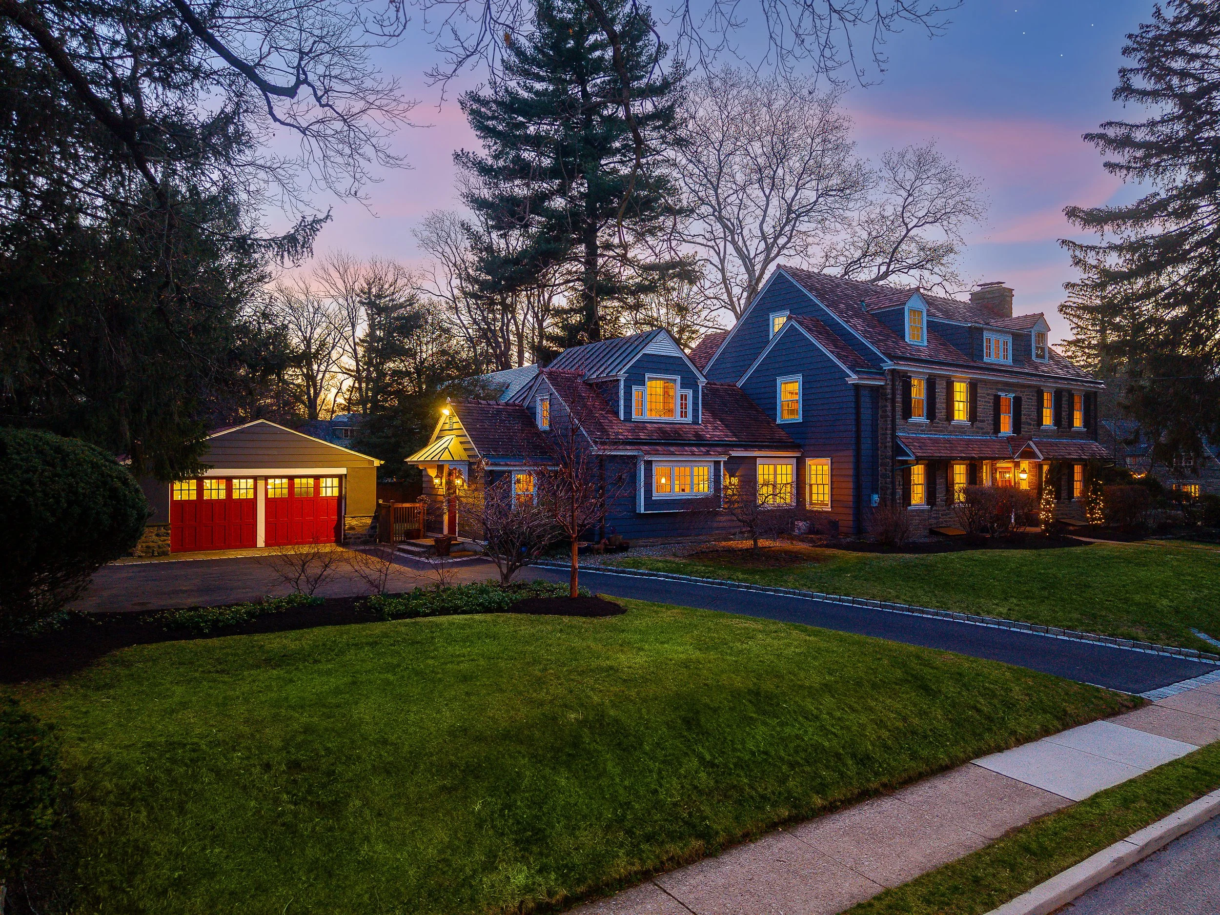 Set on a quiet, elevated lot in one of Wyndmoor’s most desirable locations, this beautifully maintained 1928 center hall stone Colonial offers a rare combination of timeless architecture and thoughtful modern updates. The home blends original character, including detailed millwork, elegant proportions, and a center hall stunning staircase, with meaningful improvements such as zoned heating and central air conditioning. The main level flows effortlessly, featuring a gracious formal living room with fireplace and built-ins, a beautifully proportioned dining room, and a bright enclosed three season room overlooking the garden and yard, creating an ideal space for relaxing or entertaining. The recently updated kitchen features white cabinetry, dark stone counters, a large center island, gas cooking with stainless hood, double wall ovens, and an open, functional layout that flows into a dramatic two story family room with custom built-ins, historic stained glass detail, and direct access to the backyard. A mudroom entry from the driveway connects seamlessly to the home and is complemented by two powder rooms on the first floor. Additional first floor spaces include a spacious laundry room and flexible options for home office or everyday living. The second floor offers a well appointed primary suite with large custom dressing room and a large bath with heated floors, along with two additional large bedrooms and a hall bath, plus a unique loft space overlooking the family room, accessed through a tucked away passage, offering a perfect setting for a reading nook, play space, or quiet retreat. The third floor provides two more bedrooms and a full bath, offering excellent flexibility. The finished lower level adds valuable living space with a recreation area, workout room, workshop, storage, and direct access to the yard. Outside, the property features a patio, level lawn, and thoughtfully designed garden areas including raised beds and a charming spiral garden. A custom oversized four car detached garage with HVAC, Swisstrax flooring, and built-in storage adds versatility for cars, hobbies, or workspace. Located within the highly regarded Springfield Township School District and just minutes from Wyndmoor’s town center, Chestnut Hill, the Wissahickon, and regional rail access to Center City, this is a rare opportunity to own a truly special home.