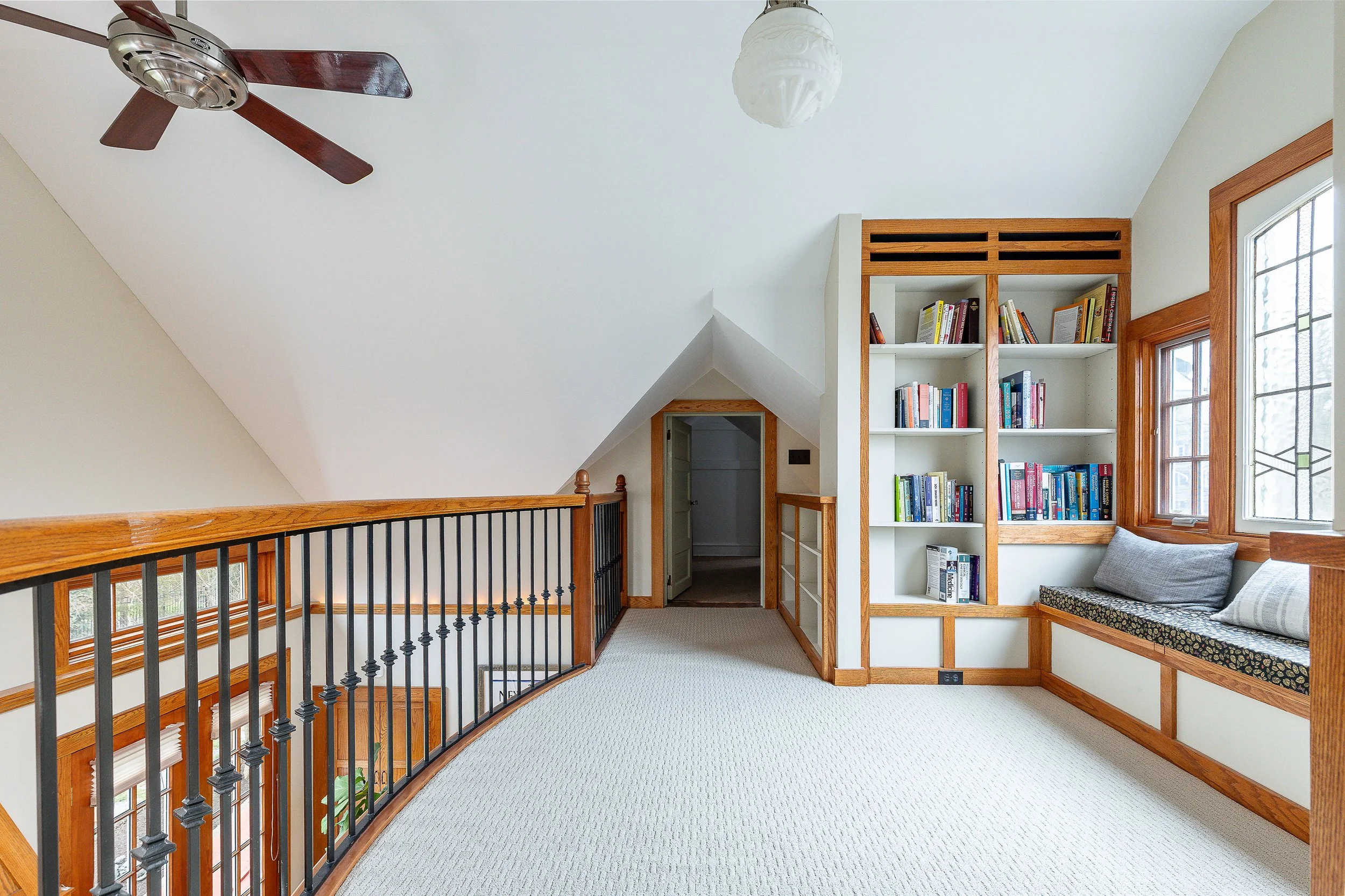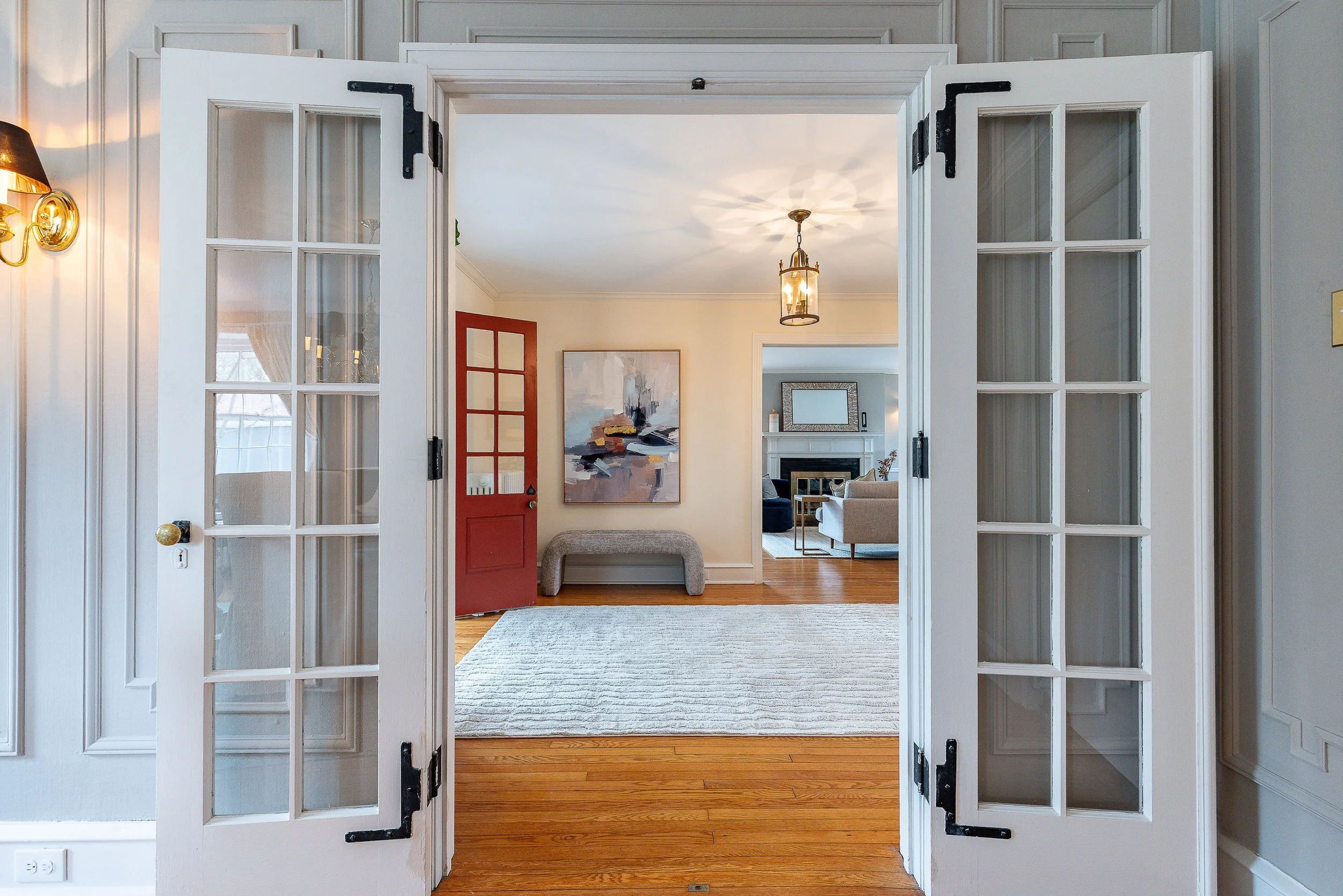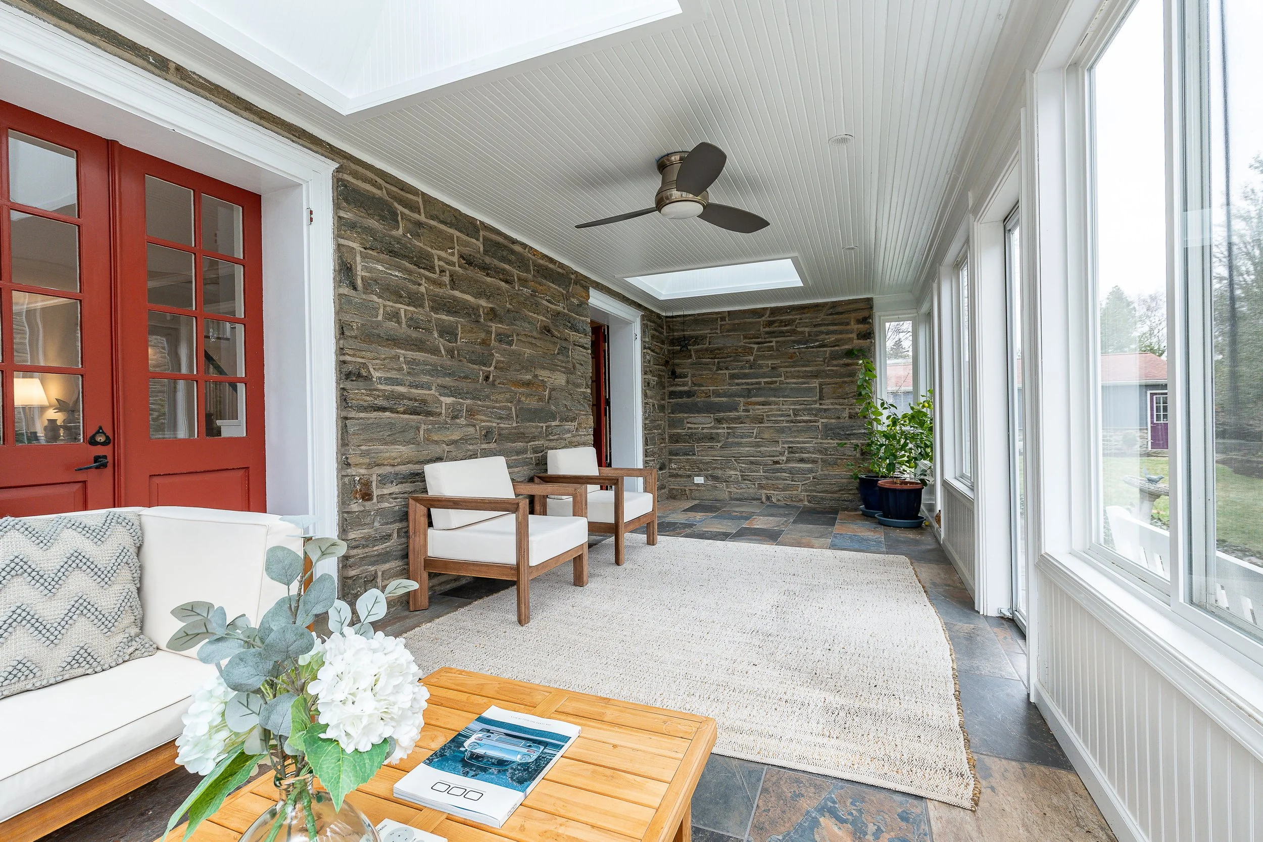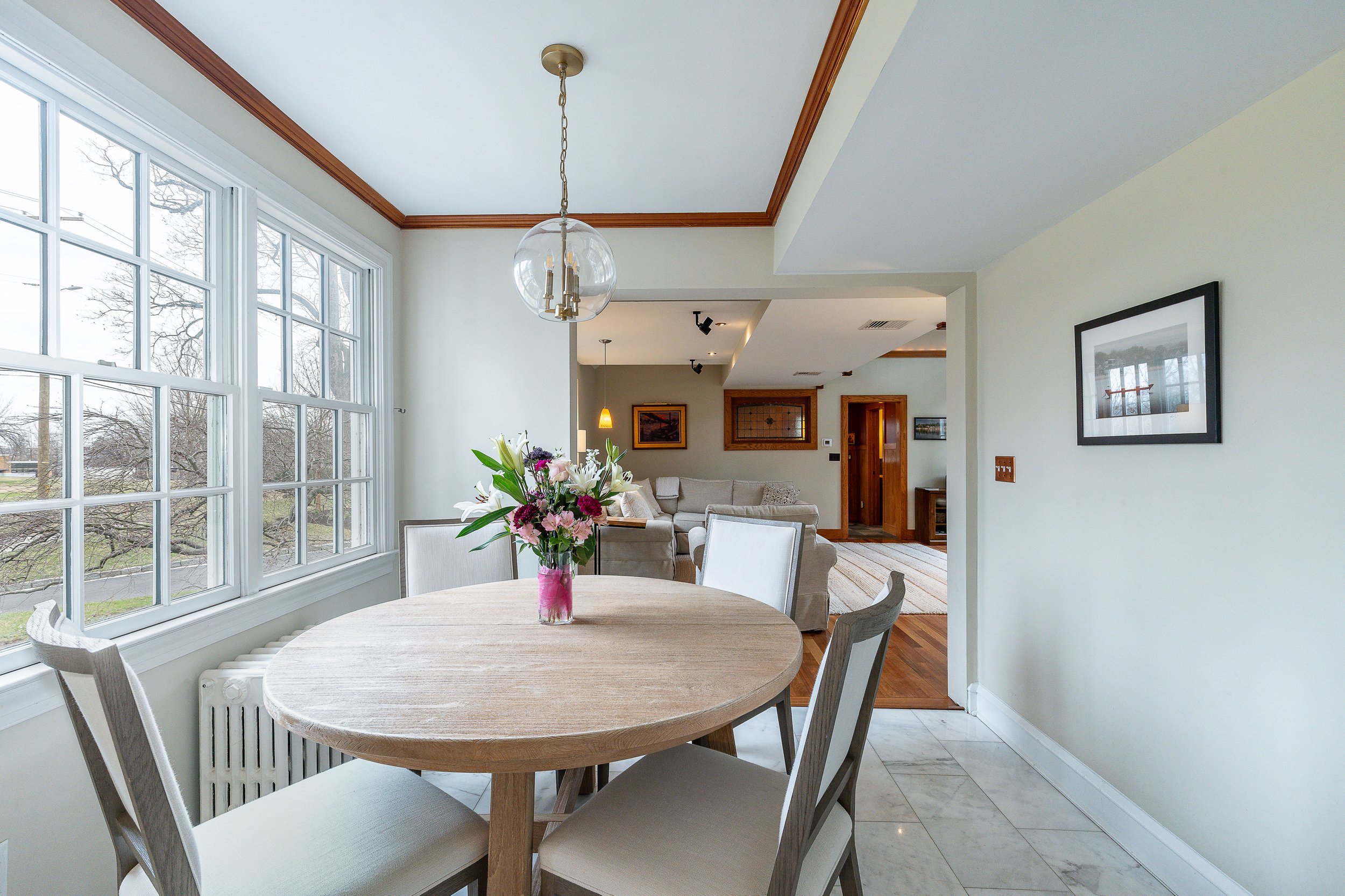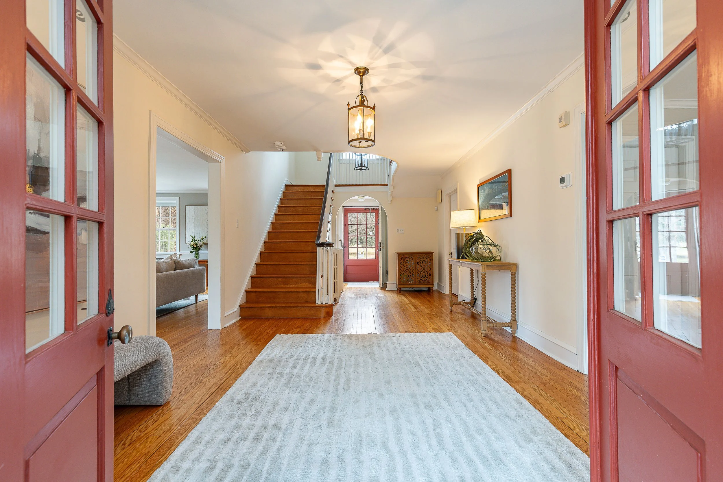 Set on a quiet, elevated lot in one of Wyndmoor’s most desirable locations, this beautifully maintained 1928 center hall stone Colonial offers a rare combination of timeless architecture and thoughtful modern updates. The home blends original character, including detailed millwork, elegant proportions, and a center hall stunning staircase, with meaningful improvements such as zoned heating and central air conditioning. The main level flows effortlessly, featuring a gracious formal living room with fireplace and built-ins, a beautifully proportioned dining room, and a bright enclosed three season room overlooking the garden and yard, creating an ideal space for relaxing or entertaining. The recently updated kitchen features white cabinetry, dark stone counters, a large center island, gas cooking with stainless hood, double wall ovens, and an open, functional layout that flows into a dramatic two story family room with custom built-ins, historic stained glass detail, and direct access to the backyard. A mudroom entry from the driveway connects seamlessly to the home and is complemented by two powder rooms on the first floor. Additional first floor spaces include a spacious laundry room and flexible options for home office or everyday living. The second floor offers a well appointed primary suite with large custom dressing room and a large bath with heated floors, along with two additional large bedrooms and a hall bath, plus a unique loft space overlooking the family room, accessed through a tucked away passage, offering a perfect setting for a reading nook, play space, or quiet retreat. The third floor provides two more bedrooms and a full bath, offering excellent flexibility. The finished lower level adds valuable living space with a recreation area, workout room, workshop, storage, and direct access to the yard. Outside, the property features a patio, level lawn, and thoughtfully designed garden areas including raised beds and a charming spiral garden. A custom oversized four car detached garage with HVAC, Swisstrax flooring, and built-in storage adds versatility for cars, hobbies, or workspace. Located within the highly regarded Springfield Township School District and just minutes from Wyndmoor’s town center, Chestnut Hill, the Wissahickon, and regional rail access to Center City, this is a rare opportunity to own a truly special home.