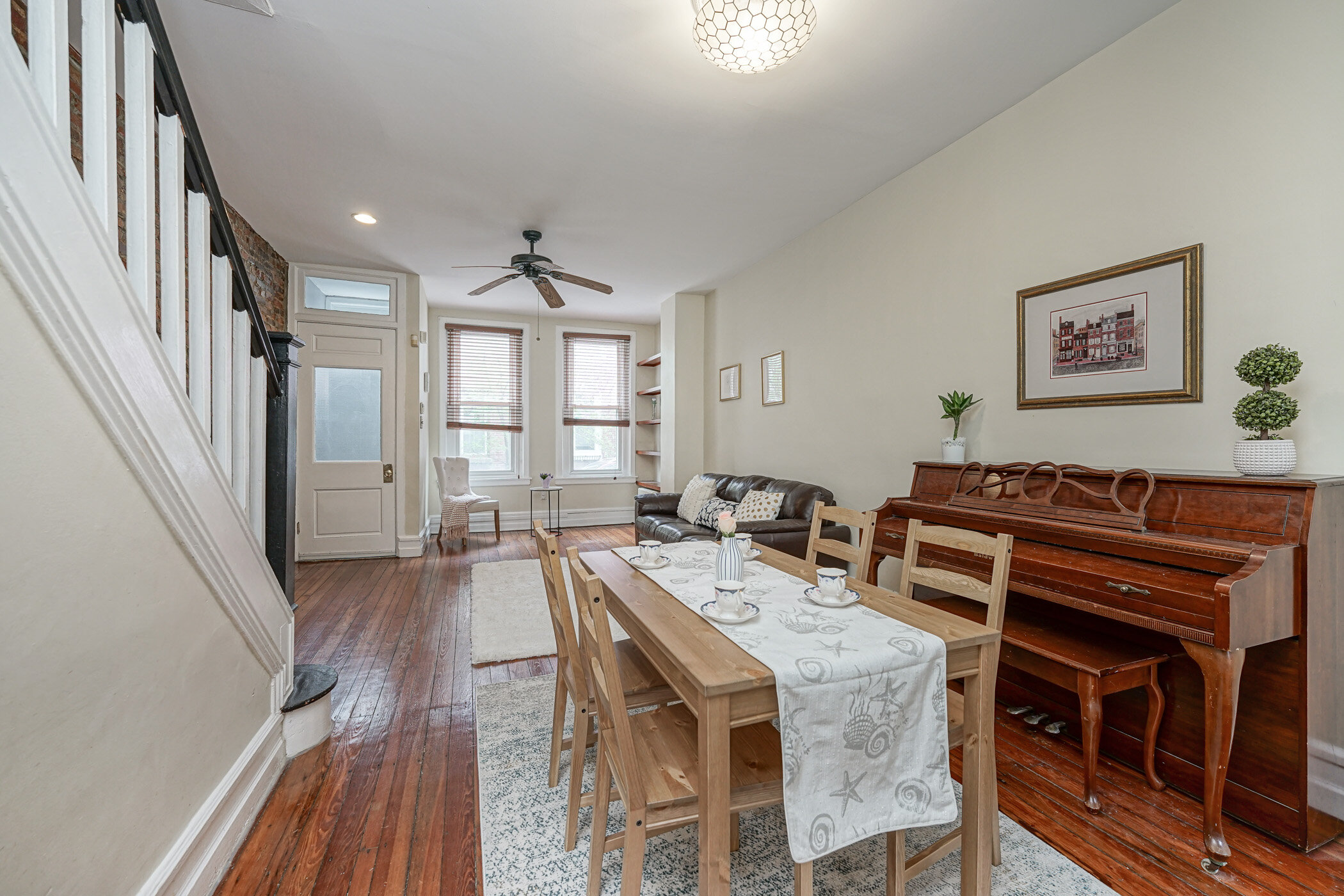 Located on a picturesque and quiet, tree-lined block in the heart of the highly sought after Fairmount neighborhood sits 892 N. Bucknell St., a lovely home boasting an abundance of quintessential Philadelphia exposed brick charm. The wow factor truly begins outside the front door on Bucknell St. where you’ll find traditional red, brick-front homes and a true neighborhood feel. There is space for a container garden or a small bistro table and chairs next to the front entrance steps. Enter to find an ornate vestibule area with an original glass paned door leading to the living room. Featuring original hardwood Pine floors throughout, an exposed brick wall, high ceilings, custom built-in shelving and two extra large front windows, this sun drenched and spacious living room creates a warm and inviting space to enjoy. Continue on to find a dining area that leads straight into the bright, eat-in style kitchen with plenty of cabinet storage. The kitchen also provides access to the large rear patio with privacy wall, an ideal space for dining al fresco or a summertime BBQ. Follow the exposed brick wall up the stairs to the second level of the home where you’ll find all three bedrooms and a custom tiled and updated full bathroom. The two bright guest rooms each feature a large closet and original hardwood floors. The primary bedroom features an exposed brick wall, two large east facing windows and plenty of space for a king sized bed and accompanying furniture. The full basement contains the laundry area and plenty of extra storage space. Given the high ceilings in the basement, it would be easy to finish the space to add more square footage and another bathroom to the home. Located within the Bache-Martin School Catchment, this home is conveniently located within walking distance to all of Fairmount’s favorite restaurants such as A Mano, Jack’s Firehouse, Bar Hygge. Coffee Shops such as Brown Street Coffee and The Lucky Goat are just a few blocks away to grab your morning coffee or afternoon sandwiches. The home is also convenient to the ever expanding Schuylkill River Trail, Philadelphia Museum of Art, The Barnes, the Rodin Museum and Franklin Institute, and other notable downtown Philadelphia cultural attractions.